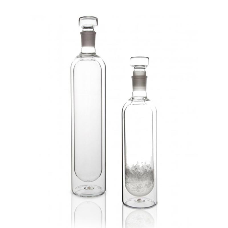Çift cidarlı ve termoslu şişeler. Borosilikat camdan yapılmıştır. Soğuk nitrojene dayanıklıdır. Meyve suları servis etmek için idealdir. Esanslar veya likörler.Özellikler