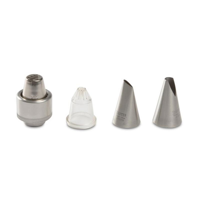 Artık sifonunuza şekli ya da boyutu ne olursa olsun,herhangi bir pasta nozulu veya boru ucu takabilirsiniz. Krema ve yoğun köpüklerle süsleme yapabilirsiniz.Nozülün konikliği sayesinde, gazın basıncı kendi kendini düzenler ve bir pasta poşeti gibi, mutlak bir hassasiyetle dekorasyon yapabileceksiniz.