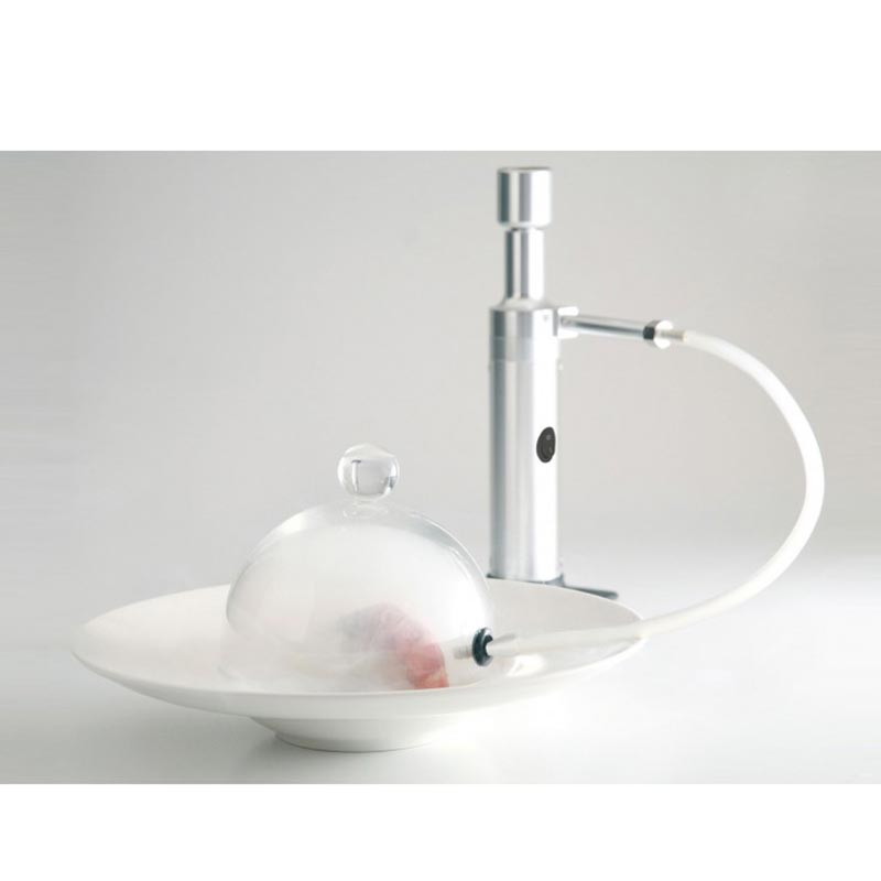 Servis için tabak ve kaplardaki duman, buhar veya aromaların kaldırmaya gerek kalmadan girişini sağlayan bağlantı valfli benzersiz klape serisidir. Cloche'yi daha düşük sıcaklıkta yapılan daha hafif dumanlarla doldurun. Doğal aromalara daha iyi saygı duyacaktır.