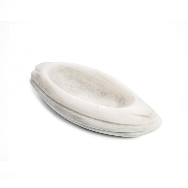 100% Chef Cacao Bean Boat Marble Presentation Plate, 21x8x6 cm, White