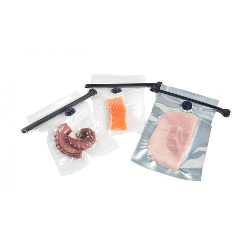 Düşük sıcaklıkta sous vide pişirmeye dayanıklı pişirme torbaları. Click-It Kitimizle uyumludur. Manuel Pompalı Vakum Paketleme Sistemi. Bu poşetler, yiyeceklerin üzerinde plastik izi bırakmadan uzun süre 100 ° C'ye kadar sıcaklıklara dayanır.