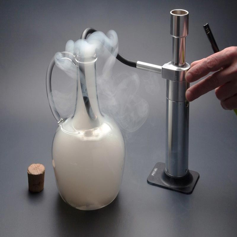 • Aromalı dumanı doğrudan tabağa sis şeklinde dökerek kavanozla şık yemekler servis edin. Ağır dumanı veya CO2 sisi veya azotu kavanoz başına aynı anda 4 yemeğe kadar servis edebilirsiniz. Bu etkiyi elde etmek için kavanozun kuru buz veya azotla kullanılması gerektiğini unutmayın.
