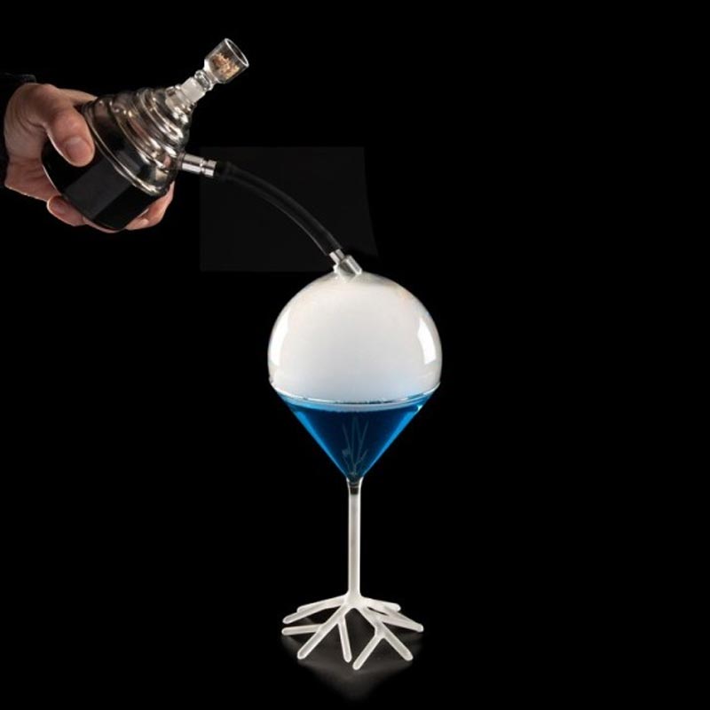 İçecekler, kaplar veya tabaklarda gıda sınıfı kabarcıklar oluşturmak için özel anında tütsüleme ve aromatizatör. Sabit ve şeffaf olan kabarcıklar aromalı dumanla doldurulur ve lokantanın önünde patladıklarında kokularını yayarlar. Her hazırlığı, en klasik olanı bile, eşsiz bir olay haline getiren görsel ve koku deneyimi.