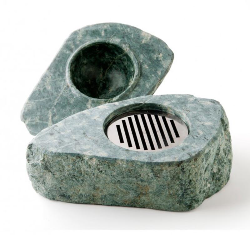 Takılı iki parça halinde oyulmuş kaya. Alt taban, bir parça kömüre uyacak şekilde oyuktur. Paslanmaz çelik ızgaraya sahiptir. Üst kısım da oyuktur ve parçayı mükemmel şekilde kapatmaya izin veren küçük bir oturuma sahiptir. Küçük bir delik kömürün nefes almasını sağlar, böylece asla sönmez. Tüm parçalar benzersizdir ve tekrarlanamaz. Müşterilerimize benzersiz bir deneyim sunmak için oyulmuş ve cilalanmış.