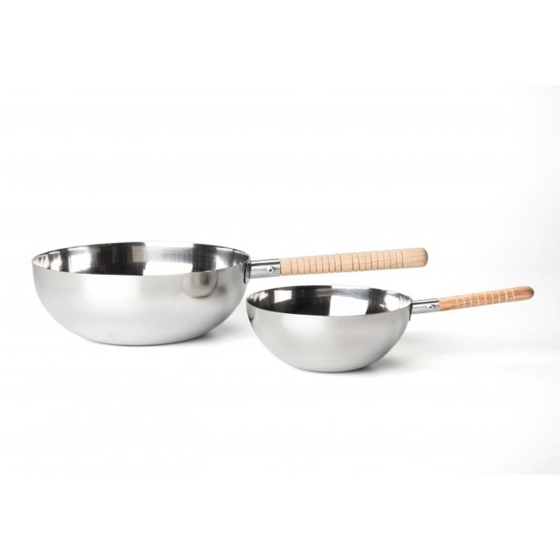 Düz tabanlı ve tornalanmış ahşap saplı paslanmaz çelik Wok. Oryantal yemeklerinizi şaşırtıcı ve özgün bir biçimde sunun.Özellikler