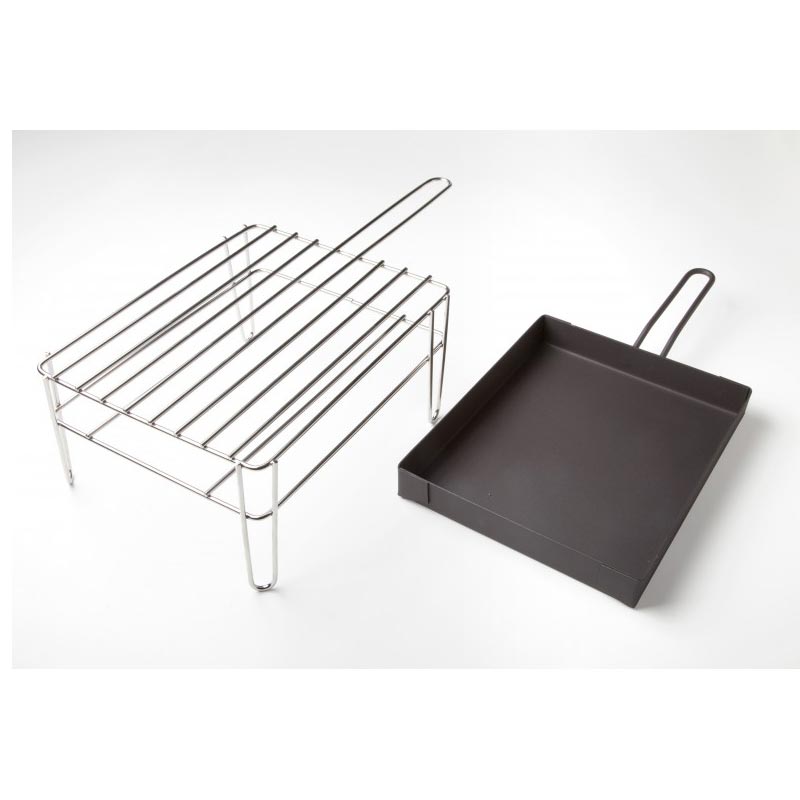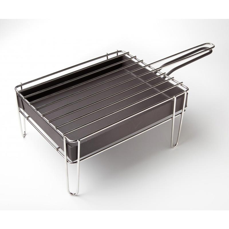 Özel bir yağ birikintisine sahip paslanmaz çelik ızgara. Masa servisi veya büfe için özel olarak tasarlanmıştır. 600 ° C'ye kadar sıcaklıklara dayanıklıdır. Isıl boya ile boyandığı için bakımı ve temizliği kolaydır.Özellikler