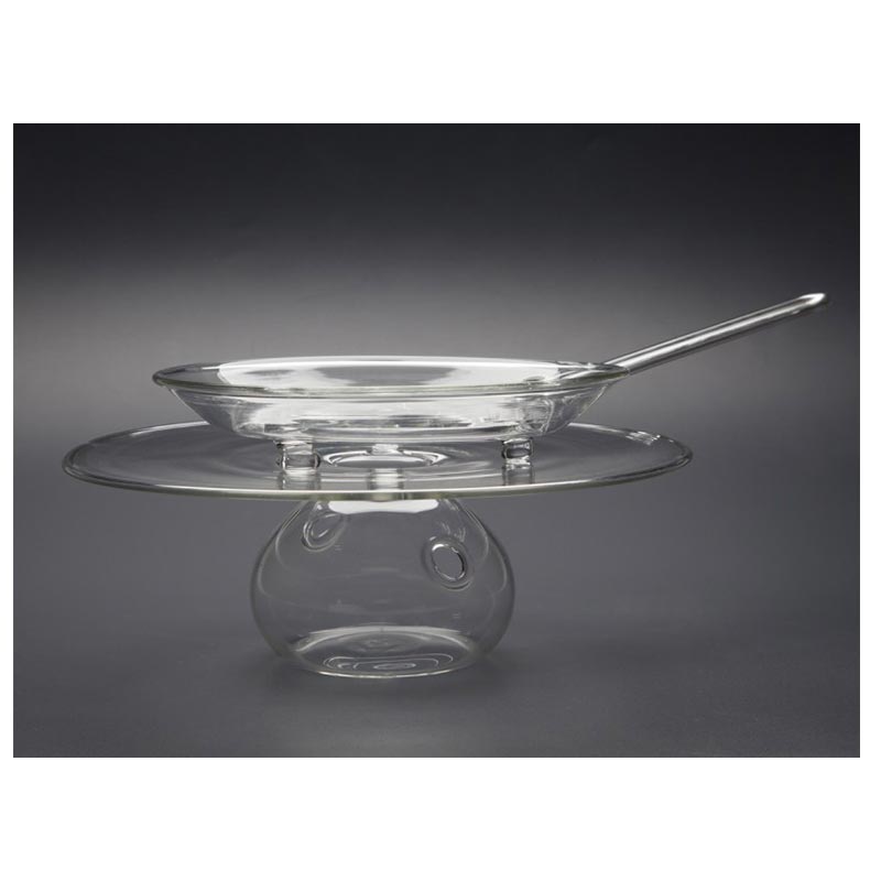 Bacaklı borosilikat camdan yapılmış paella. Doğrudan ateşte pişirmek için özel olarak tasarlanmıştır. Vulcano tabakları mükemmel bir tamamlayıcıdır. Doğrudan masada ve müşterinin önünde pişirmenize olanak tanır: çilek. kirazlar. blinis. krep...