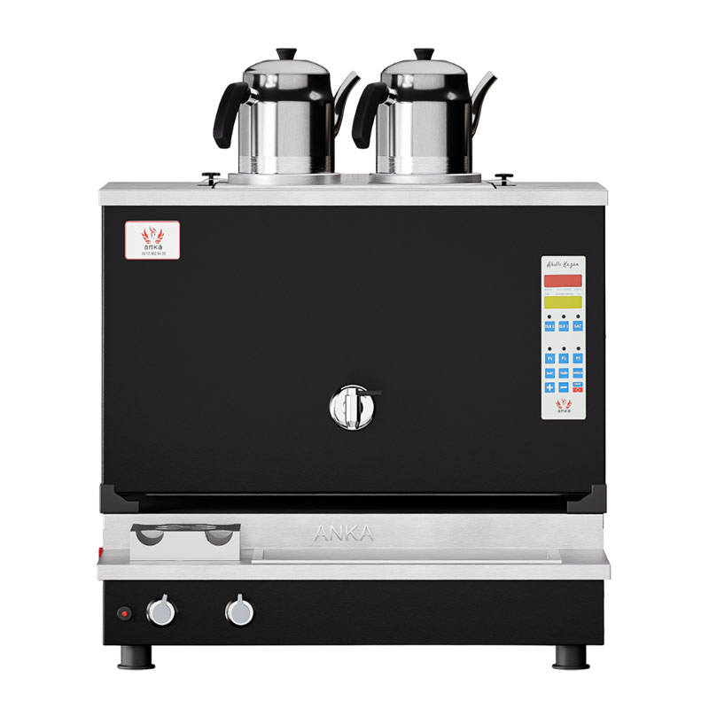 Anka Pro Plus Otomatik 2 Demlikli Çay Kazanı, 20 L, Elektrikli+Gazlı, Siyah