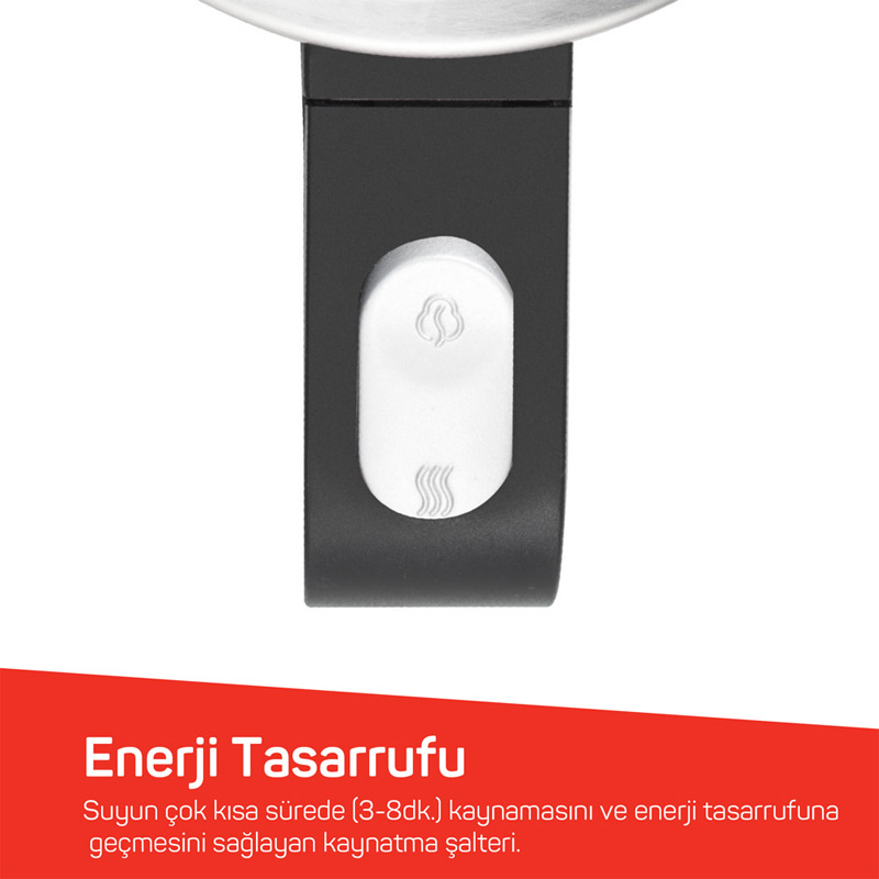 ·       Enerji Tasarrufu: Suyun kısa sürede kaynamasını sağlayan ve ardından sıcak tutma moduna geçerek %90'a varan enerji tasarrufu sağlayan Double Heat Teknolojisi ve özel kaynatma şalterine sahiptir.