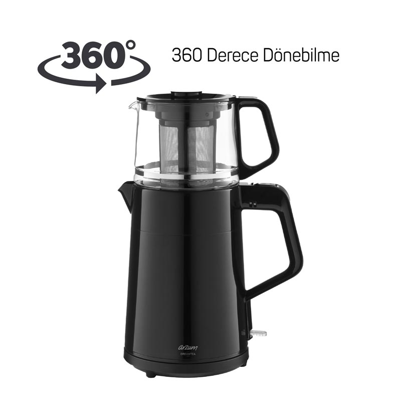 Arzum Dreamtea 1,8 L kapasiteli su haznesi ve 1 L geniş kapasiteli cam demliği ile tek seferde daha kolay çay hazırlama imkanı sunar