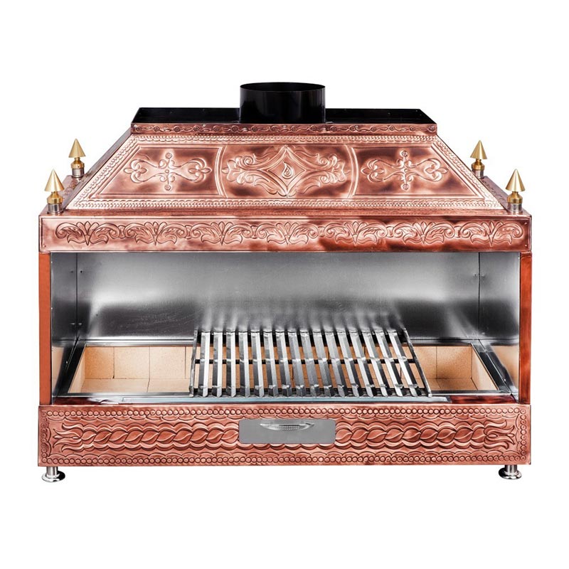 Ateşe Крытый гриль с вытяжкой для угля, 100x55x125 см, медное покрытие
