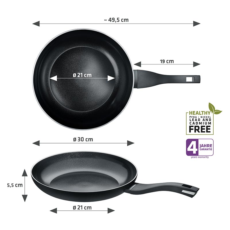 30 cm kızartma tavasının tava gövdesi% 100 geri dönüştürülmüş alüminyum kutulardan (24 parça) yapılmıştır ve bu nedenle sadece çevre için değil, aynı zamanda yüksek kalite ve gıda açısından da güvenlidir.