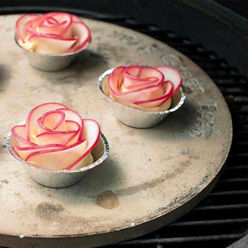 Pizza, ekmek veya lezzetli bir elmalı turta: Baking Stone kullanarak barbekünüzü tam bir fırına döndürebilirsiniz. Taşı BIG GREEN EGG'inizin ızgarasına yerleştirin; çıtır çıtır lezzetli ekmek ve pizzalar yapın. Baking Stone, EGG hayranları arasında favori aksesuarlardan biridir. EGG'yi ateşlerken pizza taşını doğrudan ızgaraya yerleştirin (convEGGtor ile birlikte), böylece yavaş yavaş ısınabilir. Baking Stone'un ısı tutması çok iyi olduğundan, servis yapmadan önce pizzaları ve çerezleri daha uzun süre sıcak tutabilirsiniz.