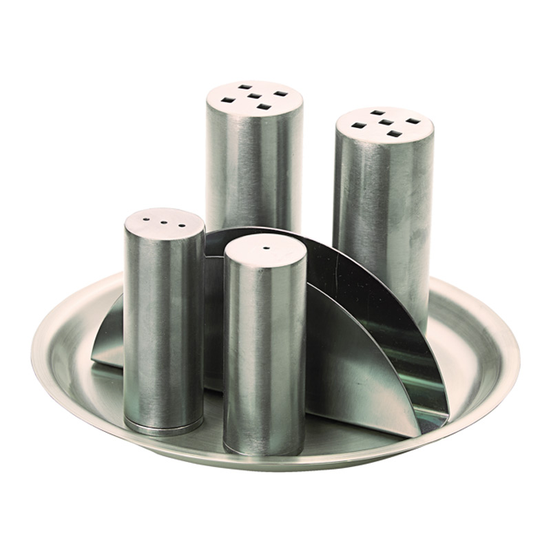 Biradlı Groovy GRV-342 6'lı Yuvarlak Tuzluk Baharat Peçetelik Takımı, Parlak