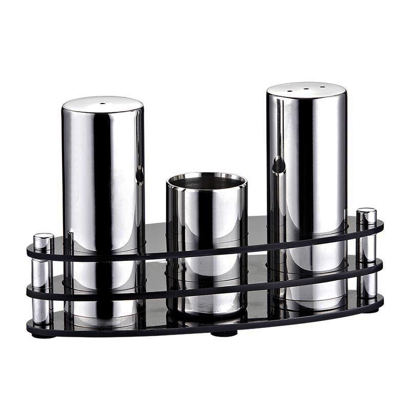 Biradlı GRV-03 طقم شاكر ملح لامع مستطيل الشكل، 3 قطع