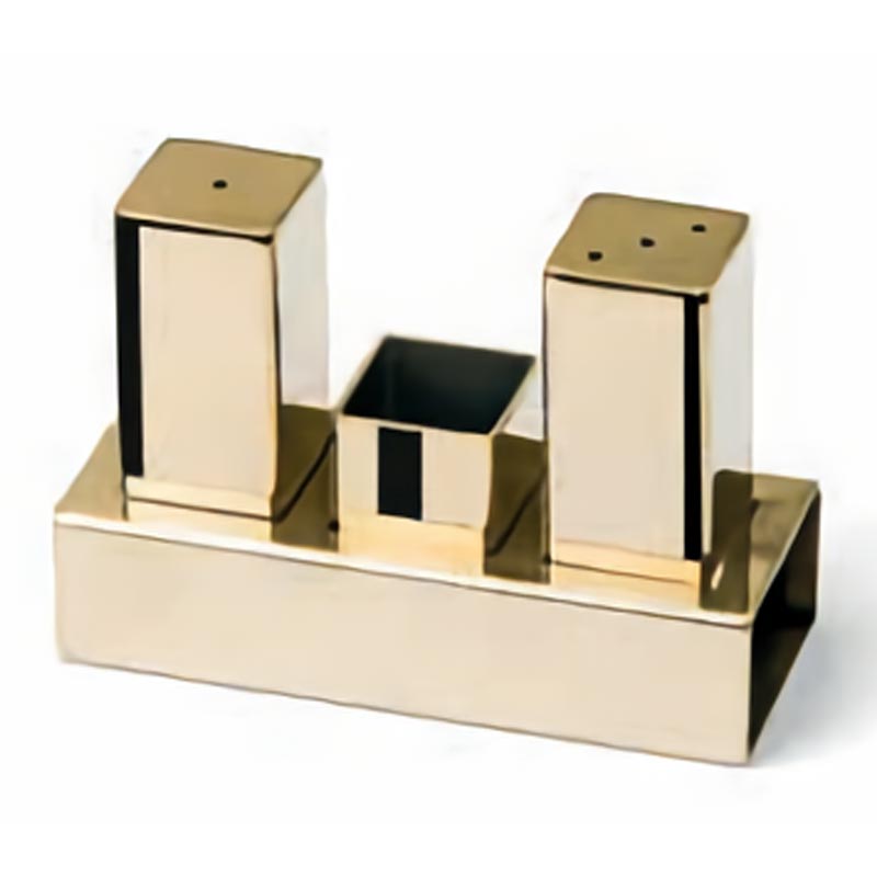Biradlı GRV-105 طقم شاكر ملح لامع مربع، 3 قطع، ذهبي اللون