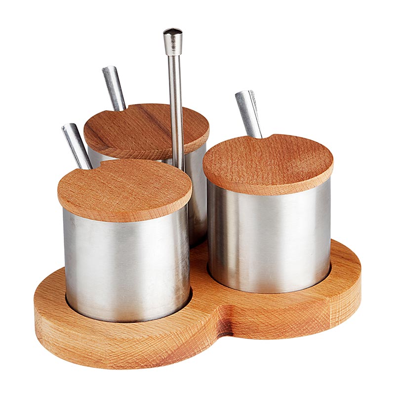 Biradlı GRV-92 Wooden Stand Salt and Spice Shaker Set, 3 pcs