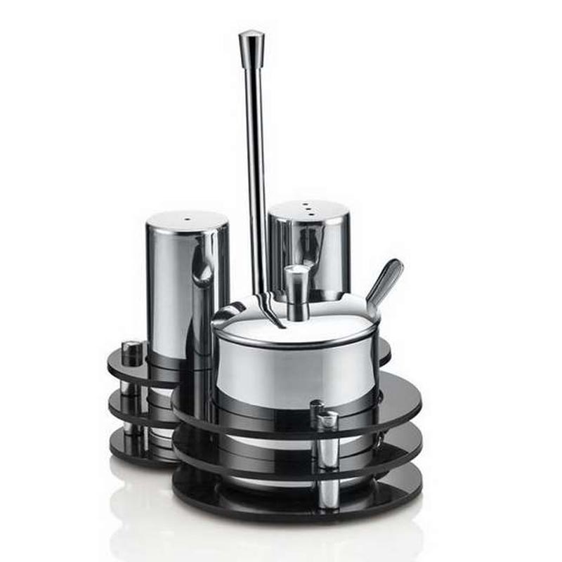 Biradlı Pleksi Standlı 3'lü Tuzluk Baharatlık Takımı 18/10