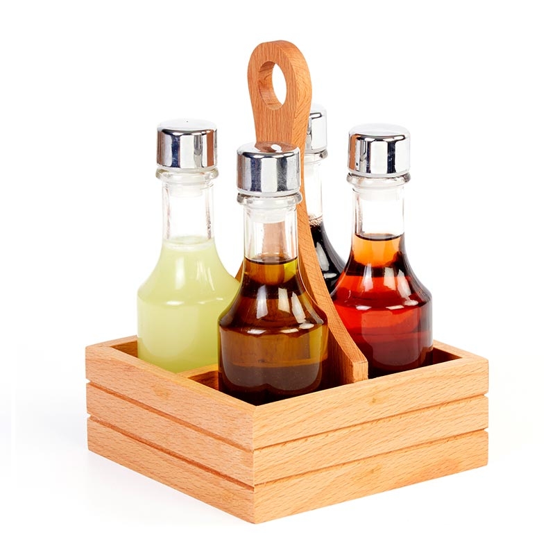 Biradlı GRV-2406 طقم حامل زيت مع حامل خشبي، 4 قطع، 300 سم مكعب