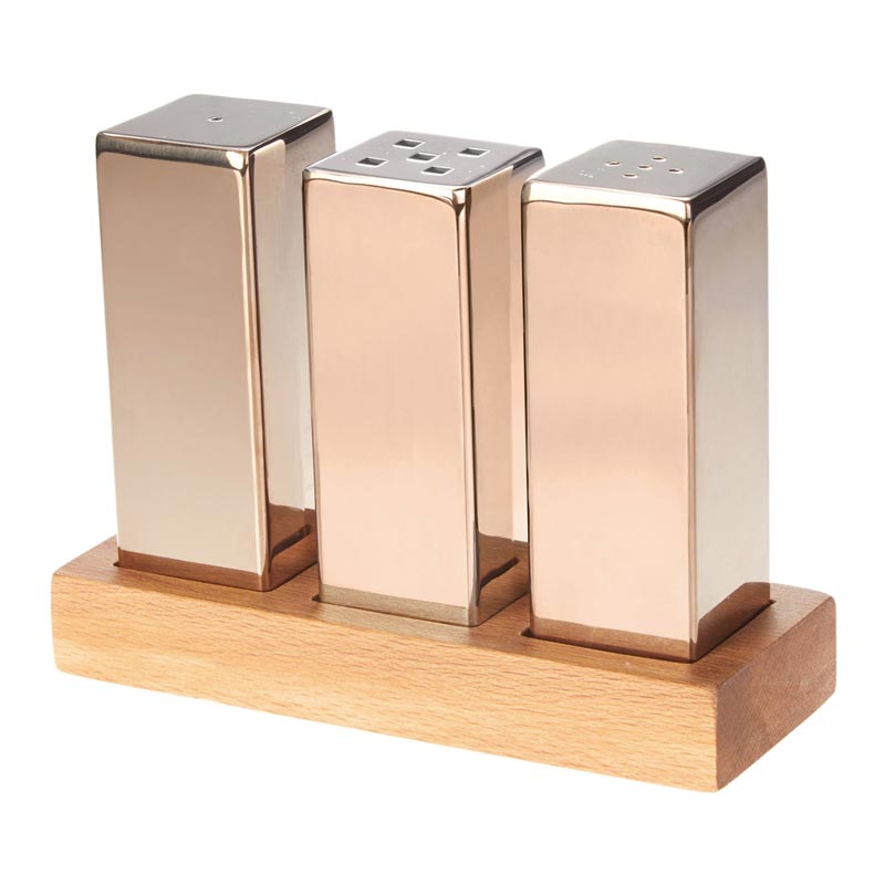 Biradlı GRV-294 Everest Square Large Salt Shaker Set, 3 pcs, Copper