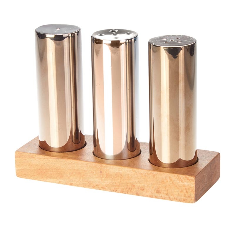Biradlı GRV-65 Salt Shaker Set with Wooden Stand, 4 pcs, Copper