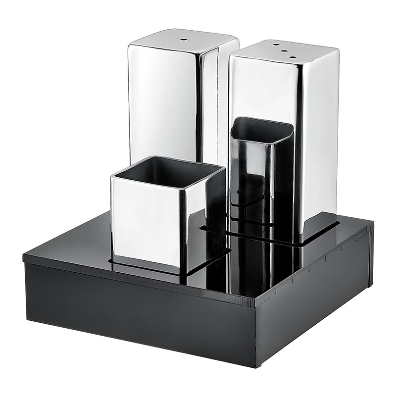 Biradlı GRV-106 طقم شاكر ملح لامع مربع، 2 قطعة