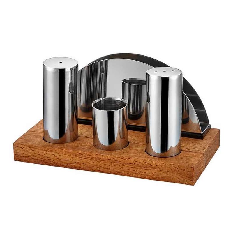 Biradlı Ahşap Standlı 4'lü Tuzluk Peçetelik Takımı