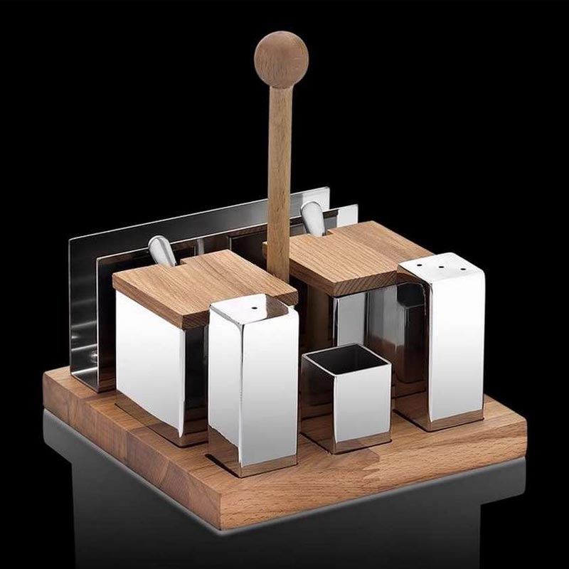 Biradlı GRV-51 طقم حامل مناديل مربعة لملح الطعام مع حامل خشبي، 4 قطع