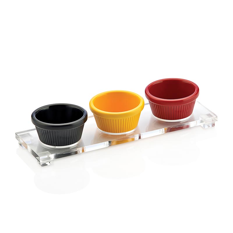 Açık büfelerde kullanılacak teşhir tepsisidir. 3 adet sosluk alabilir.