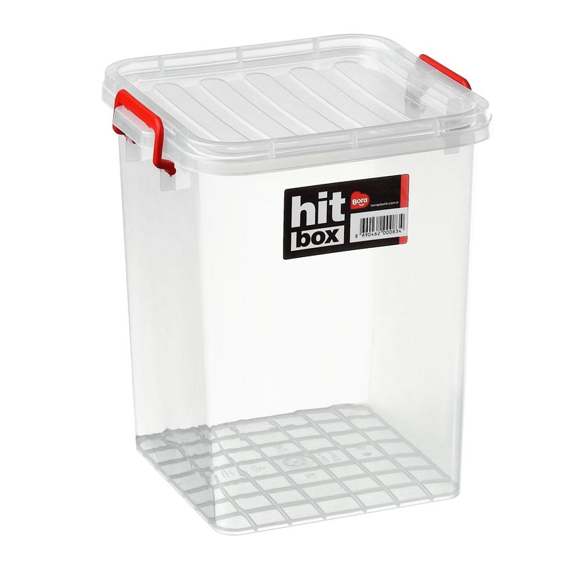 Bora Plastik Hit Box Kare Kapaklı Kasa, 13 L, Şeffaf