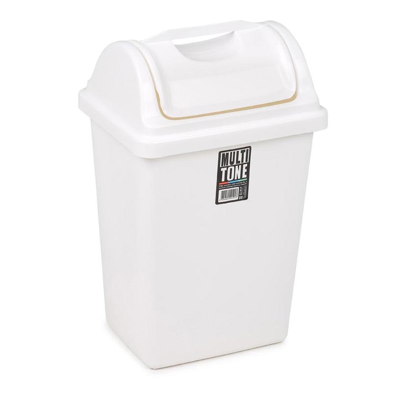 Bora Plastik سلة نفايات قابلة للدفع، زاوية، رقم: 3، 14 لتر، أبيض