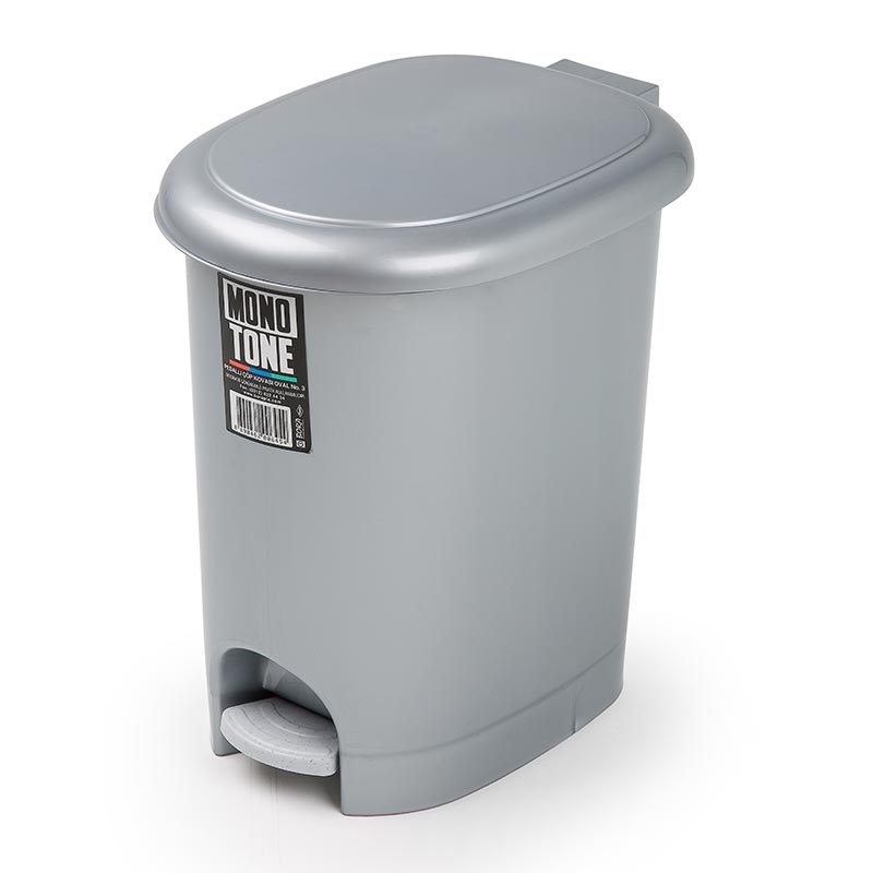 Bora Plastik Çöp Kovası, Pedallı, Oval, 17 L, Gri,BO645