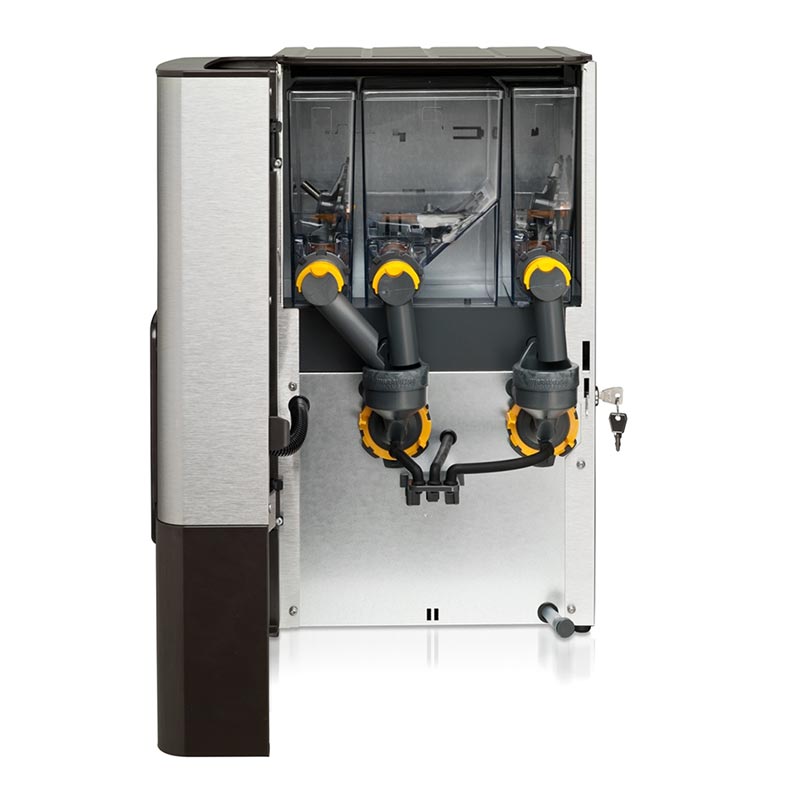 Hazır malzemeler için makine, fincan başına demlenmiş. Su bağlantısı olan yerler için. Makine, plastik bir damlama tepsisi ve durulama programı ile donatılmıştır.Bu modelde 4 farklı içecek için 3 adet bidon bulunmaktadır: