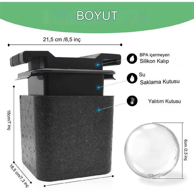 Güvenlik Onaylı: Küre buz kalıbı, tatsız, kimyasal içermeyen ve BPA içermeyen dayanıklı ve esnek bir silikondan yapılmıştır.