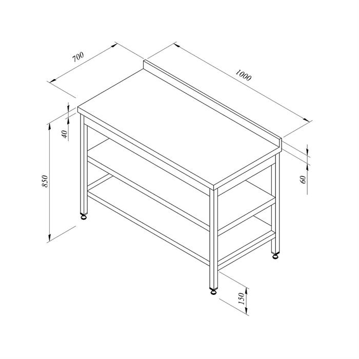 Öztiryakiler Ara Raflı Sırtlı Çalışma Tezgahı, 100x70 cm