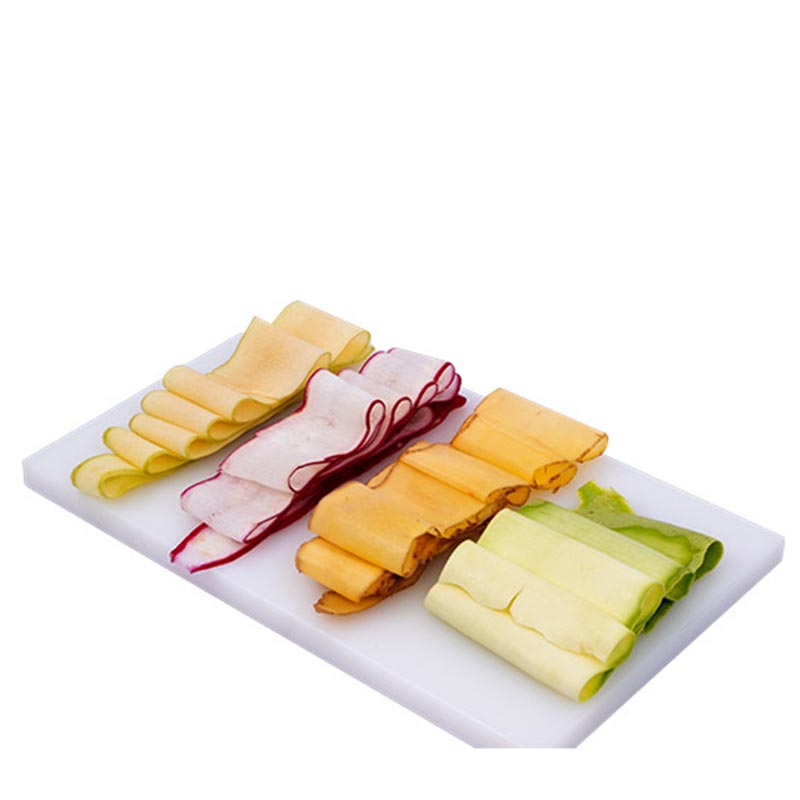 • Otel, restoran, fast food, catering gibi endüstriyel mutfaklarda kullanılan yaprak kesme makinesi, 1,5mm kesme kalınlığına sahiptir. Bıçağın tamamı paslanmaz çelik malzemeden üretilmiş olup gıda standartlarına uygundur. Meyve ve sebzeleri yaprak şeklinde keserek, yemek sunumlarında görselliği ve lezzeti ön plana çıkarır.