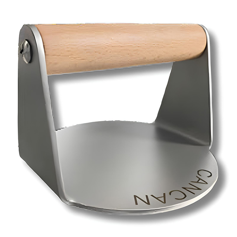 Smash Burger Press, burger köftelerini tek hamlede bastırarak hızlı karamelizasyon ve eşit pişirme sağlar. 12 mm, 14 mm ve 16 mm çap seçenekleriyle sunulur. Paslanmaz çelik tabanı ve ergonomik ahşap sapı sayesinde hem profesyonel mutfaklarda hem de evde tutarlı sonuçlar elde etmenizi sağlar.