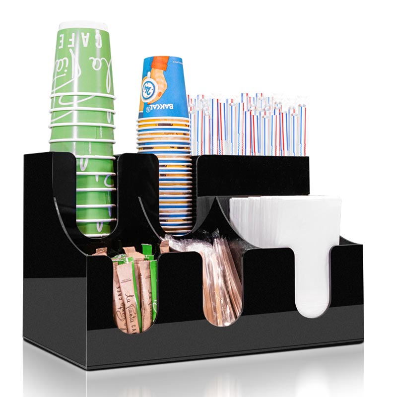 Decorelax 7 Bölmeli Pipet Çay Şeker Karıştırıcı Peçete Standı, Siyah