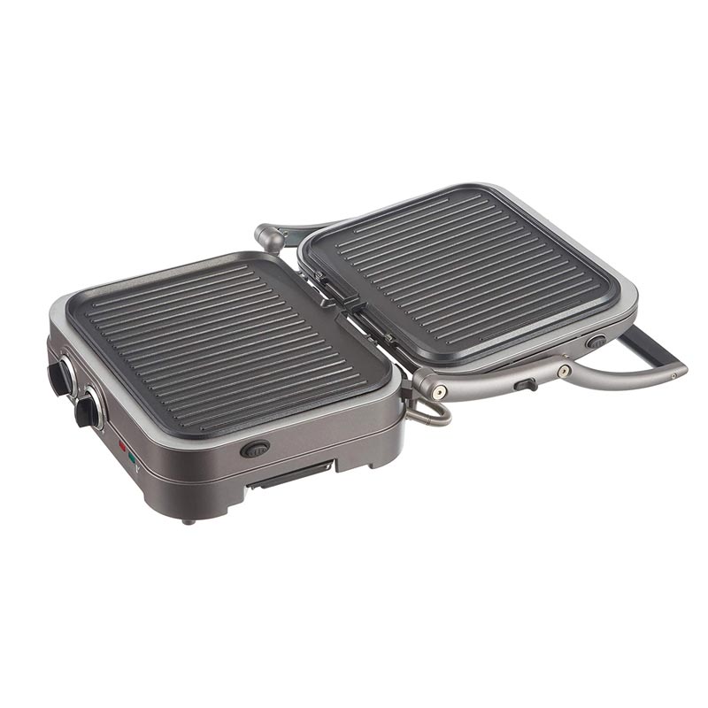 Çok işlevli: ızgara (dik kapak) barbekü (yatay kapak) tost (kapalı kapak)