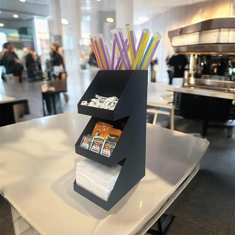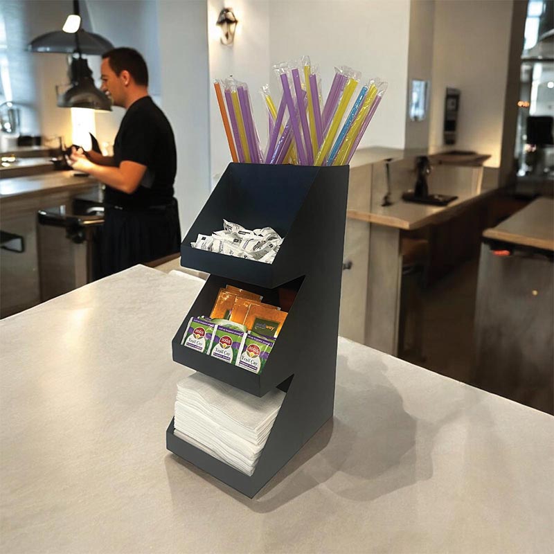 Decorelax 3 Katlı 5 Bölmeli Metal Pipet & Peçetelik & Şekerlik Organizer, Siyah