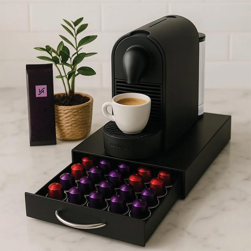 Decorelax Çekmeceli 5 Bölmeli Kapsül Kahve Standı, Siyah