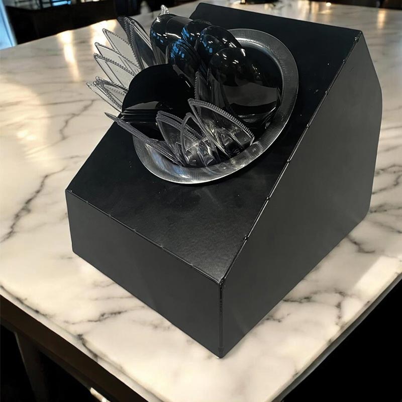 - Bu görüntüde, masa üstü düzenleyici veya kaşık tutucusu olarak bilinen bir mutfak ürünü yer almaktadır. Ürün, siyah kaplamalı metal bir gövdeye sahip olup, içerisinde bir adet paslanmaz çelik kâse bulunmaktadır. Kaselerin içine, kaşıklar düzgün bir biçimde yerleştirilmiştir. Bu ürün, genellikle restoran veya kafelerde, kahve hazırlama istasyonlarında kullanılan pratik bir düzenleme aracıdır. Bu tür ürünler hem işlevsel hem de estetik bir kullanım sunarak, masa üstünün düzenli kalmasına yardımcı olur.