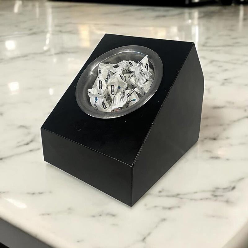 • Bu görüntüde, masa üstü düzenleyici veya kaşık tutucusu olarak bilinen bir mutfak ürünü yer almaktadır. Ürün, siyah kaplamalı metal bir gövdeye sahip olup, içerisinde bir adet paslanmaz çelik kâse bulunmaktadır. Kaselerin içine, kaşıklar düzgün bir biçimde yerleştirilmiştir. Bu ürün, genellikle restoran veya kafelerde, kahve hazırlama istasyonlarında kullanılan pratik bir düzenleme aracıdır. Bu tür ürünler hem işlevsel hem de estetik bir kullanım sunarak, masa üstünün düzenli kalmasına yardımcı olur.
