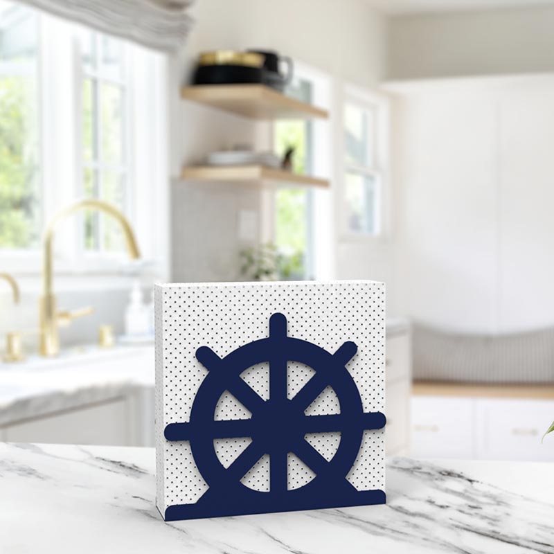 Bu benzersiz Dümen Temalı Metal Peçetelik, mutfak ve yemek masanıza estetik bir dokunuş katarken, günlük kullanımda da maksimum konfor sağlar. Siparişinizi hemen vererek sofralarınızı deniz esintisiyle süsleyin!