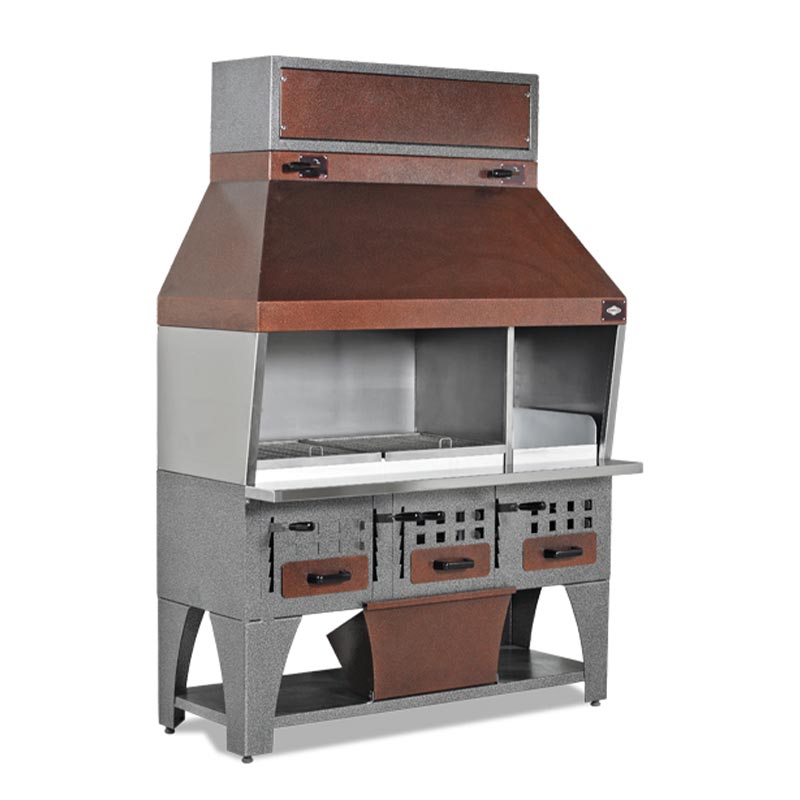 Ateşe Indoor Grill with Charcoal Hood, 200x55x125 cm, Copper Coating