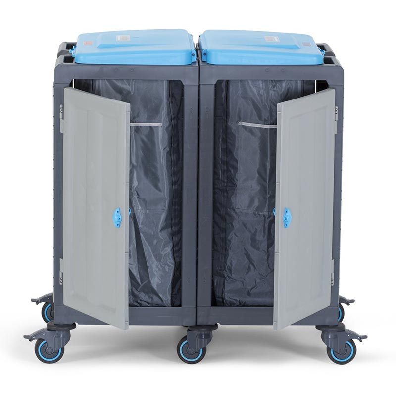 Hastane, restaurant, okul, yurt, rezidans ve otel gibi alanlarda atıklarınızı toplamanın hızlı ve pratik yoludur. Kolayca hareket edebilen sessiz, tamponlu ve frenli tekerlekleri sayesinde çarpmalara karşı dayanıklıdır. Frenli tekerlekler ile eğik düzlemlerde sabitleme imkanı sunar.  Esnek özellikleriyle hızlı ve pratik bir şekilde atıklarınızı toplamanızı sağlar. Uluslararası standartlardaki üretimi, modüler ve ergonomik yapısı, 2 x 120 lt  atık toplama hacmi ile işlerinizi kolaylaştırır. Opsiyonel aksesuarı ile atık bölmenizi 2 x 60 lt olarak kullanma imkanı sunar. Komple gövde yapısının plastik olması, iç ve dış mekan kullanımlarına olanak sağlar, su ile yapılan temizliklerden hiç bir şekilde etkilenmez ve paslanma yapmaz, ürünün hammaddesinde kimyasal maddelere ve ısıya dayanıklı Poli Propilen malzeme kullanılmıştır. Her iki blokta da dört tarafı kapalı iki tarafı açılabilir kapaklar estetik bir görüntü verir. Çöp torba kilitleri sayesinde kullanım rahatlığı sunmaktadır. Çöp kapakları üzerindeki atık sınıflandırma renk etiketleri ve görev çizelgeliği sayesinde, birbirinden farklı alanlar için sınıflandırma ve görevliyi denetim imkanı sunarak, uluslararası standartlarda hijyenik ve sağlıklı bir temizlik imkanı sunar.