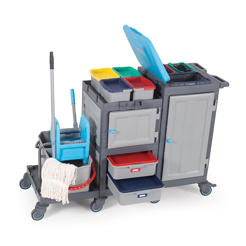 عربة تنظيف المستشفيات Fantom Procart 1364 مع دلو ضغط، 2 مقصورة قمامة