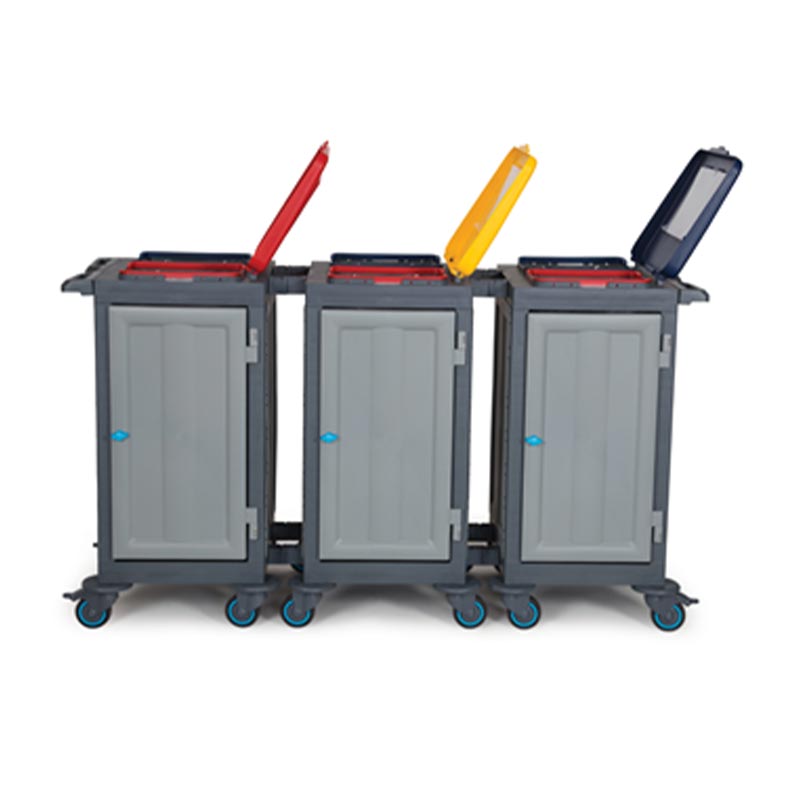 Hastane, restaurant, okul, yurt, rezidans ve otel gibi alanlarda atıklarınızı toplamanın hızlı ve pratik yoludur. Kolayca hareket edebilen sessiz, tamponlu tekerlekleri sayesinde çapmalara karşı dayanıklıdır. Frenli tekerlekler ile eğik düzlemlerde sabitleme imkanı sunar. Esnek özellikleriyle hızlı ve pratik bir şekilde atıklarınızı toplamanızı sağlar. Uluslararası standartlardaki üretimi, modüler ve ergonomik yapısı, 2 x 120 lt atık toplama hacmi ile işlerinizi kolaylaştırır. Opsiyonel aksesuarı ile atık bölmenizi 2 x 60 lt olarak kullanma imkanı sunar. Komple gövde yapısının plastik olması, iç ve dış mekan kullanımlarına olanak sağlar, su ile yapılan temizliklerden hiç bir şekilde etkilenmez ve paslanma yapmaz, ürünün hammaddesinde kimyasal maddelere ve ısıya dayanıklı Poli Propilen malzeme kullanılmıştır.  Çöp torba kilitleri sayesinde kullanım rahatlığı sunmaktadır. Çöp kapakları üzerindeki atık sınıflandırma renk etiketleri ve görev çizelgeliği sayesinde, birbirinden farklı alanlar için sınıflandırma ve görevliyi denetim imkanı sunarak, uluslararası standartlarda hijyenik ve sağlıklı bir temizlik imkanı sunar.