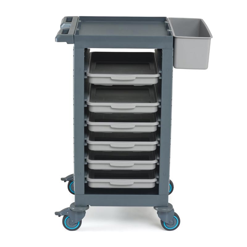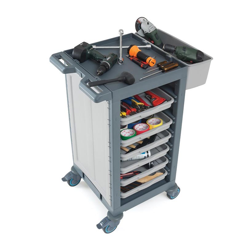 Tamirhanelerde, oto yıkama ve servislerinde tercih edilir. Altı adet tepsi kullanımına imkan vermesi ve raf sistemi sayesinde diğer modüllerden farklı bir seçenek sunar. Kolayca hareket edebilen sessiz, tamponlu ve frenli tekerlekleri sayesinde çarpmalara karşı dayanıklıdır. Frenli tekerlekler ile eğik düzlemlerde sabitleme imkanı sunar. Modüler ve ergonomik yapısı ile işlerinizi kolaylaştırır. Komple gövde yapısının plastik olması, iç ve dış mekan kullanımlarına olanak sağlar, su ile yapılan temizliklerden hiç bir şekilde etkilenmez ve paslanma yapmaz, ürünün hammaddesinde kimyasal maddelere ve ısıya dayanıklı Poli Propilen malzeme kullanılmıştır. Modülün iki tarafının kapalı olması estetik açıdan farklılık arz etmektedir. İtme Sapı ve aksesuar kovası kullanıcılarına ek fayda ve kullanım rahatlığı sağlar.