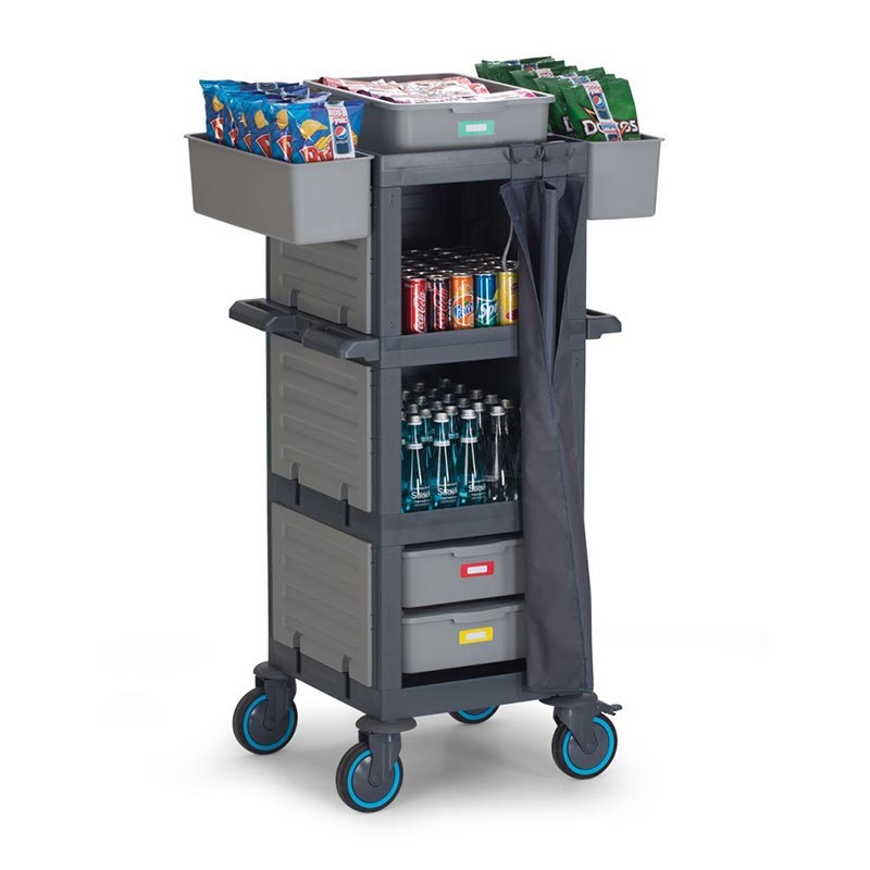 Kullanım alanları daha dar olan restaurant, otel, okul ve hastane gibi işletmelerin servis hizmetlerinde tercih edilir. Kolayca hareket edebilen sessiz, tamponlu ve frenli tekerlekleri sayesinde çarpmalara karşı dayanıklıdır. Frenli tekerlekler ile eğik düzlemlerde sabitleme imkanı sunar. Esnek özellikleriyle hızlı ve pratik bir şekilde servis yapma imkanı sağlar. Modüler ve ergonomik yapısı ile işlerinizi kolaylaştırır. Komple gövde yapısının plastik olması, iç ve dış mekan kullanımlarına olanak sağlar, su ile yapılan temizliklerden hiç bir şekilde etkilenmez ve paslanma yapmaz, ürünün hammaddesinde kimyasal maddelere ve ısıya dayanıklı Poli Propilen malzeme kullanılmıştır.